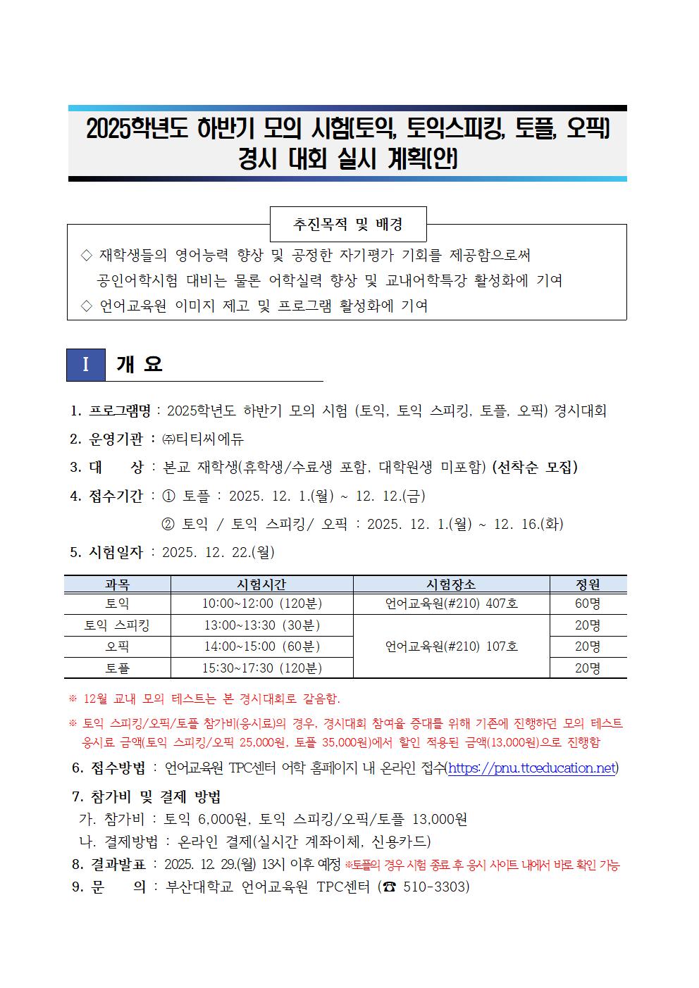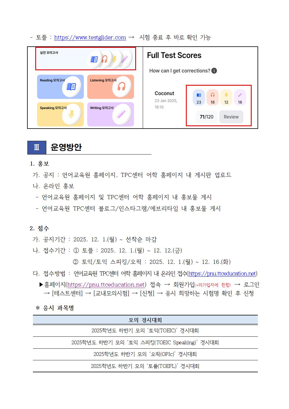 2025학년도 하반기 모의 시험 (토익, 토익 스피킹, 토플, 오픽) 경시대회